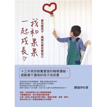 內容簡介13年男孩教養實錄的精華濃縮,感動萬千讀者的母子成長書◇超越理論式的家教實踐書,最適合媽媽的教育指南。 ◇獻給所有愛孩子,卻不知如何教育孩子的媽媽。 ◇幫助媽媽自我提升教育觀念和方法。 ◇媽媽只要做出1%的改變,在孩子身上產生的效應就會成倍放大。這是一位教育學博士和心理諮詢師媽媽不斷豐富自我、提升價值的精彩蛻變, 也是一部用心血寫成的親子筆記,讀起來真實、樸素、實用, 適合所有正在∕將要做媽媽的女性閱讀。作者簡介陳淑珍 教育學博士、心理諮詢師,一個13歲優秀男孩的媽媽,現從事家庭教育研究及青少年心理諮詢工作。 多年來,她的教子方案累積成了十多本筆記。本書就是這些教養實錄的精華濃縮,寫出來和更多的媽媽們一起分享。詳細資料ISBN:9789865983178 叢書系列:樂親子系列 規格:平裝 / 242頁 / 16 X 23 CM / 普通級/ 單色印刷 / 初版 出版地:台灣 本書分類:親子教養> 生活教養  內容連載第一章重新認識孩子——原來我以前想錯了